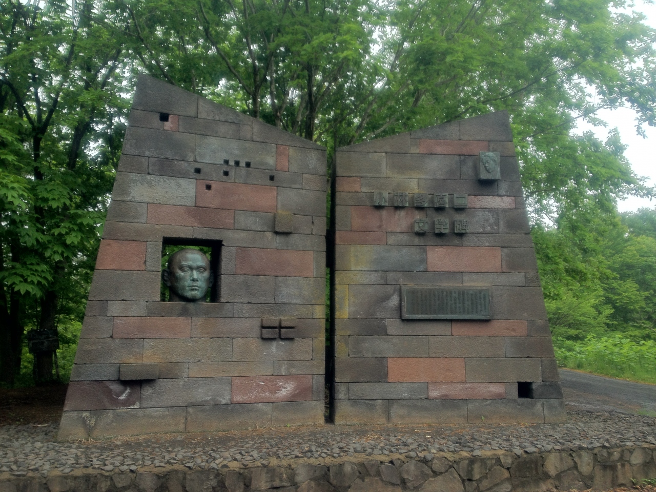 設計は本郷新氏で本の見開きをかたどったものです。左に青年労働者の頭像を、右上には本人の肖像、そして左上には北斗七星と北極星のはめこみがあります。