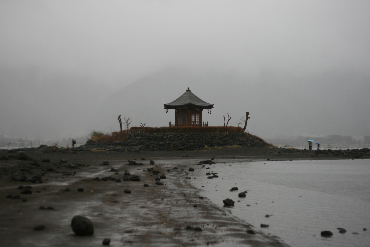 現在の状態はわかりませんが、まだ水位が低くて天気が良ければ、六角堂と富士山のコラボ写真が撮れるかも。