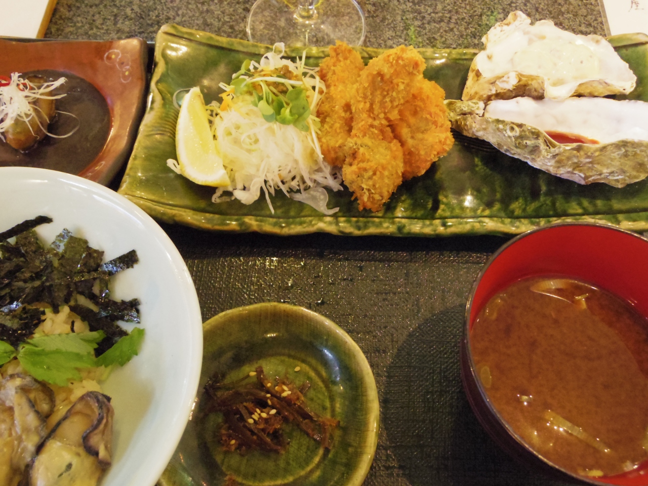カキフライ、オイル漬け、カキごはん、カキみそ汁と牡蠣三昧。