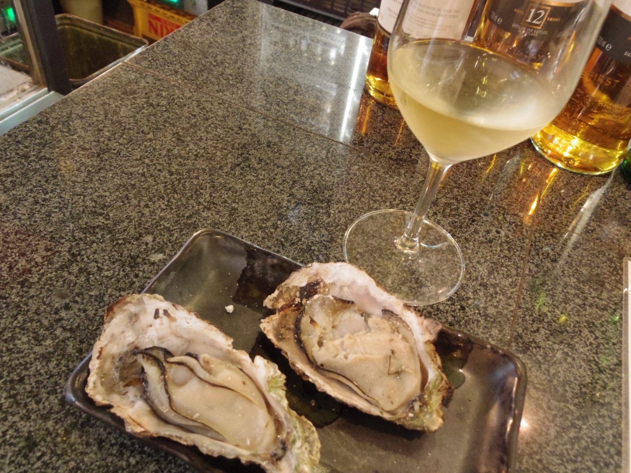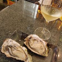まずは、焼き牡蠣2個。アツアツでジューシーがたまりません。
