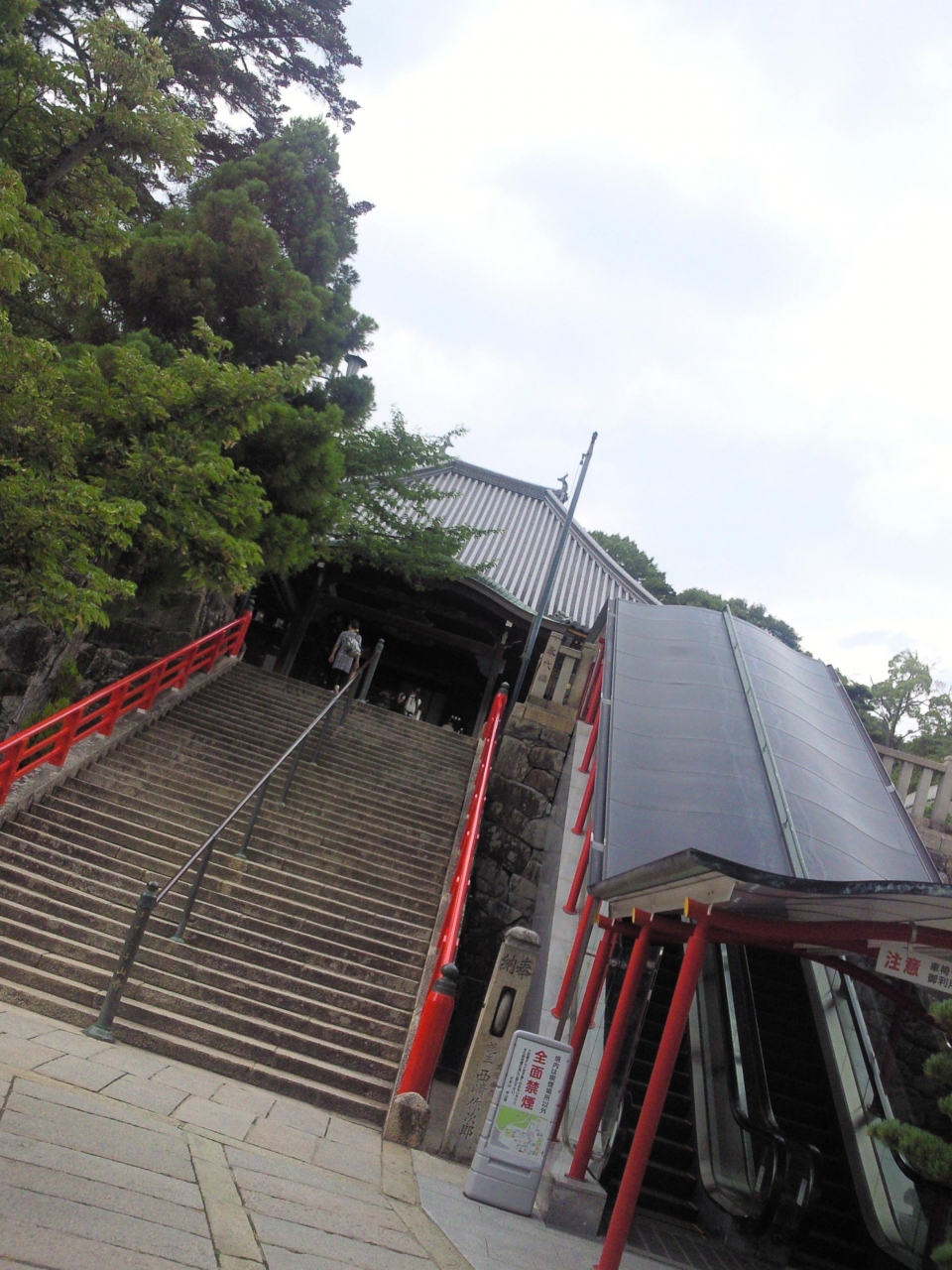 階段が多いですが、妊婦さんも来られるからでしょう、本殿までの階段にはエスカレーターが設置されています。