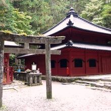 日光山の開祖、勝道上人が弘仁8(817)年3月1日(旧暦)に遷化したとき、茶毘に付したのが、開山堂がある仏岩谷だそうです。その後、勝道上人の霊をまつるところとし、朱塗りで重層宝形造りという建築法のお堂を建てたのが開山堂。
