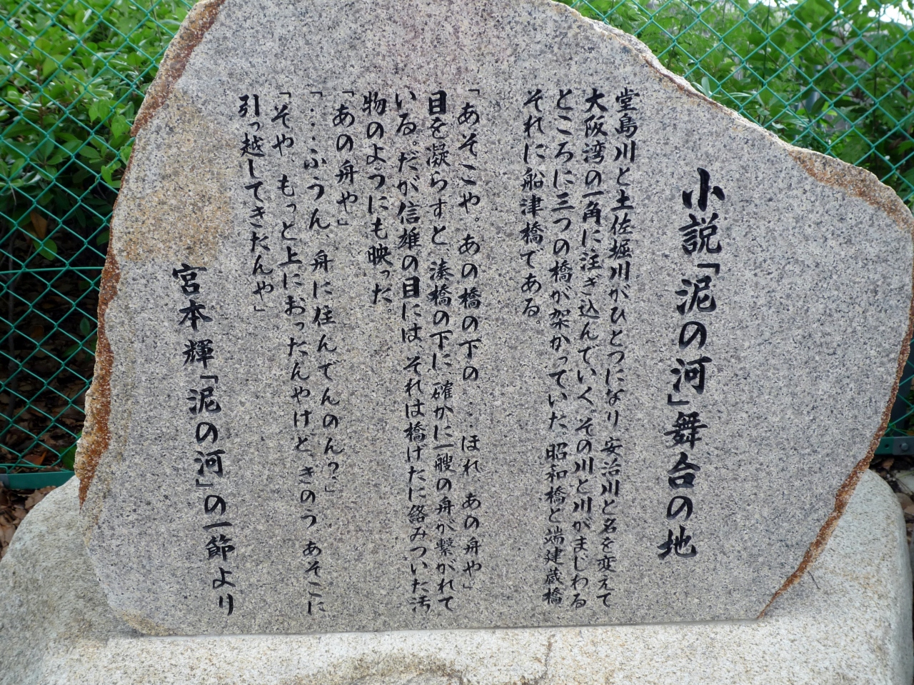 湊橋の南側のたもとに、「泥の河」文学碑があります。
