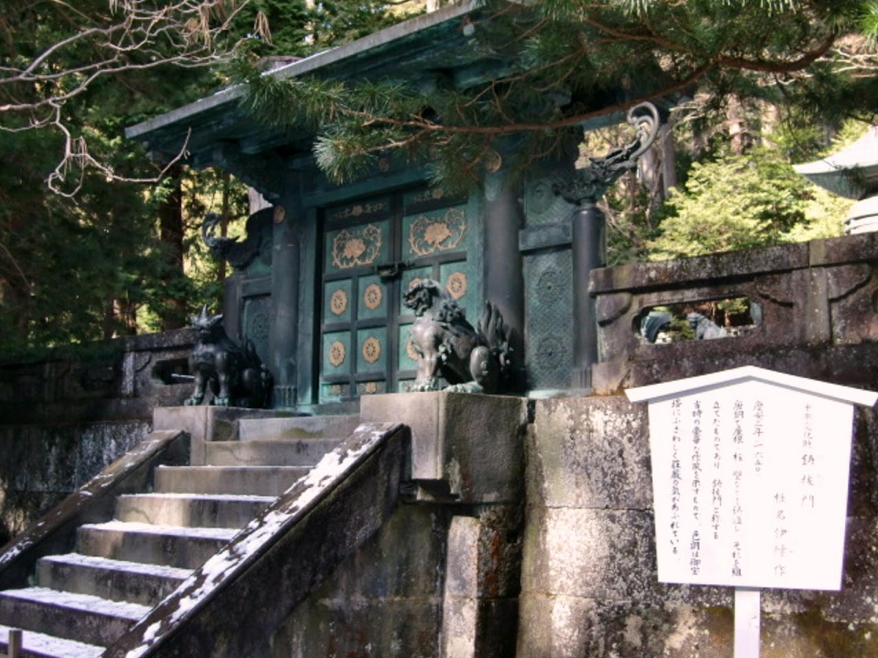 扉を除いて、柱や梁などをひとつの鋳型でつくったことから鋳抜門と呼ばれているそうです。造りは大変重厚でいかにも当時お金を掛けて制作した日光東照宮だけのことはあります。慶安3年(1650)に鋳造されています。門は全て青銅鋳物製です。
