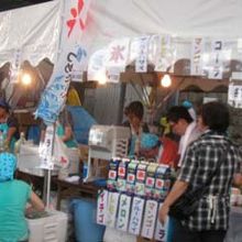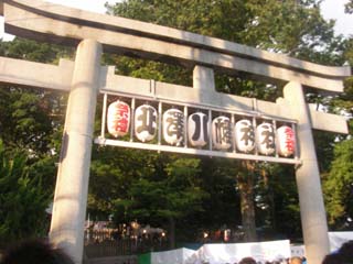 目黒川から分岐する北沢川の緑道に沿って進み、淡島から下北沢駅に向かう途中の坂の途中に北沢八幡宮があり、例大祭で境内には屋台が出ています。台地の斜面を利用して階段があり一段上が本殿になっています。出店は地元の商店会が出していて、近所の子供たちで賑わっていました。