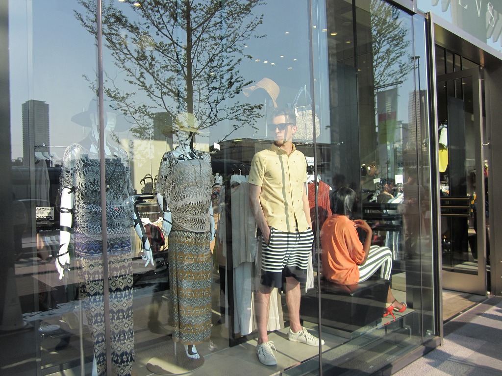 とにかくすごい人出で、混雑していたことしか記憶に残っていなかったのですが、1階のショーウィンドウに生きたマネキンがいたことを思い出しました。