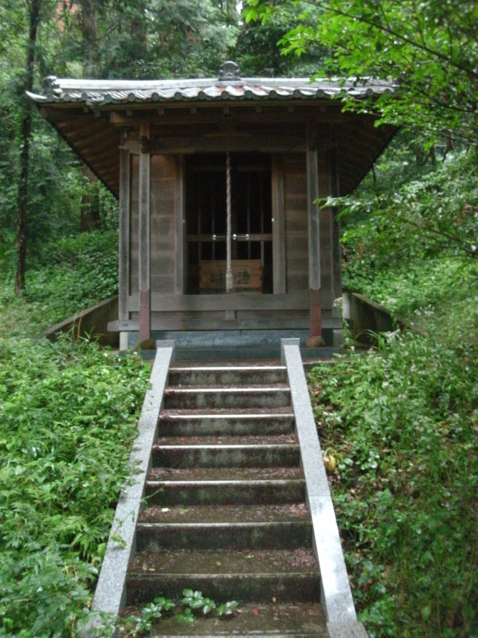 藤沢市の西俣野にある御嶽大明神の近くです。道から一段と高くなった樹木の中、昼なお暗い。鬱蒼とした雑木林と竹林が覆っている森です。保存地区ですので開発されていませんから昔が残っているのでしょう。小田急線善行からのハイキング・ウォーキングコースです。とてもこじんまりとした神社でした。