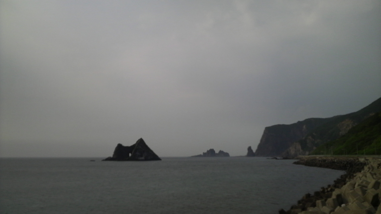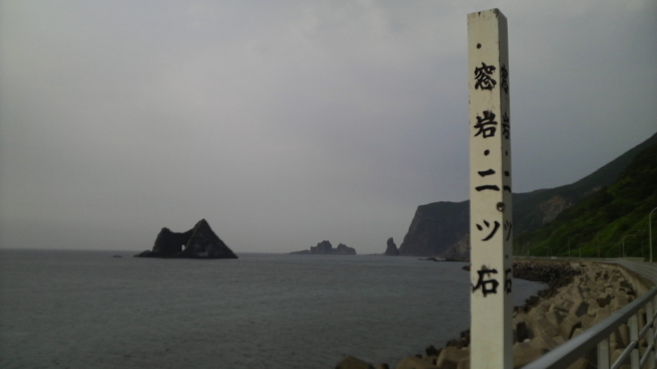 積丹半島の西側、神恵内村の村役場から国道229号線を半島の先の方へ向かってしばらく行ったところにあります。波の浸食によって穴のあいた奇岩です。付近を含め、積丹半島の海岸沿いには、神威岬のローソク岩といい、島武意海岸といい奇岩が多く、かつ半島の西側は人も少ないので、異様さがますます漂います。窓岩の付近もときどき集落はありますが、休憩できる店はおろか人家もないエリアが続きます。半島西側は交通量も比較的少ないためツーリングにはもってこいです。ひと足、歩を止めてこんな岩を眺めてみるのもよいのではないでしょうか。