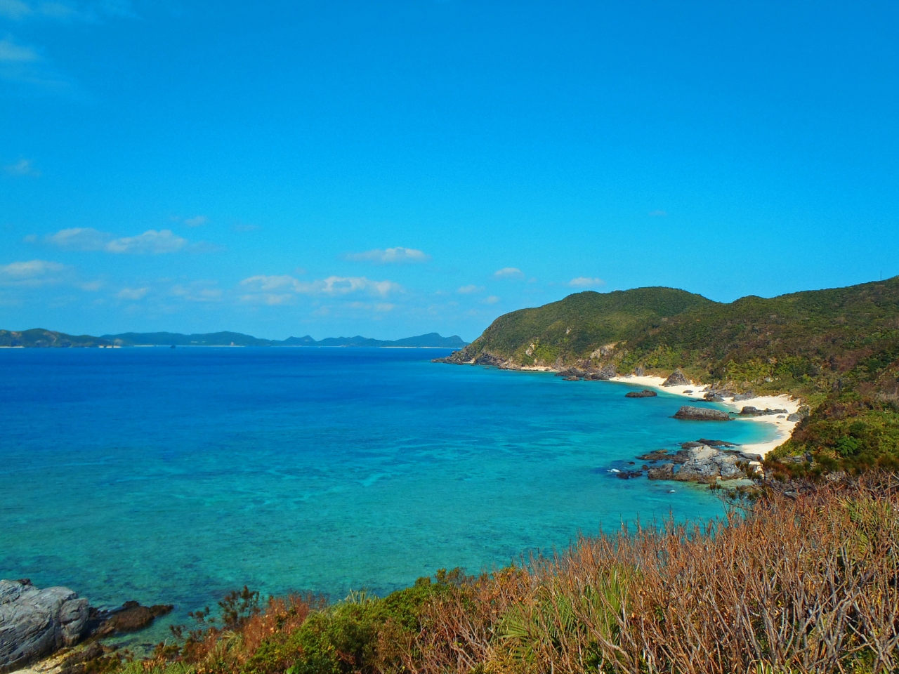 ここから阿波連ビーチや反対側のビーチ(遊泳禁止)を眺めると,海の美しさがよーく分かります。海の色のグラデーションが本当に美しいです。