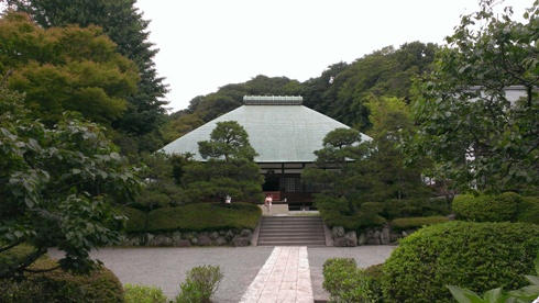 八幡宮からちょっと離れていますが杉本寺や報国寺からほど近い。山門に近づくと中から猫が一匹走り出て来て出迎えてくれた。ここで飼われている、桃太郎という名前の猫であるらしい。人になれていてとても可愛かった。本堂でお参りすると、たくさんの人がさらに左上の方にある高台に登って行く・・・。行ってみると古い洋館を改造した石窯ガーデンテラスというレストランがあり、イギリス式の庭園を見ながら食事やお茶ができるということだった。お寺の敷地内?のような感じであるが・・・不思議な空間であった。