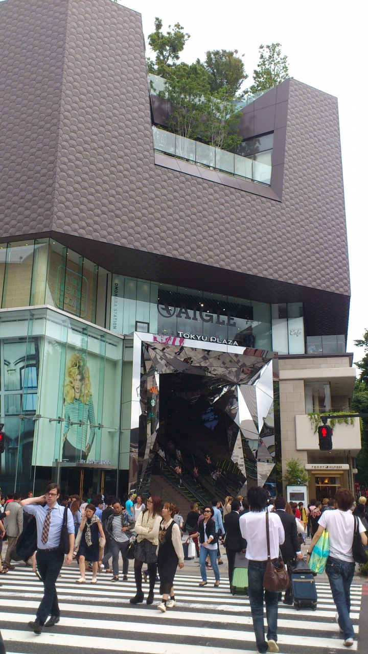 原宿の明治通りと表参道の交差点にある新しいファッションビルです。歩いているとメタリックっぽい外観が目に入ります。日本初上陸のアメリカンイーグルなどアメカジっぽい店が中心に入ってます。また世界一の朝食で有名なビルズも入っているので朝早くから若い人たちでにぎわっています。
