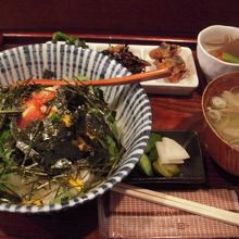 丼には小鉢やおかずの盛りあわせ、つけもの、みそ汁など家庭的でどれも優しい味でした。
