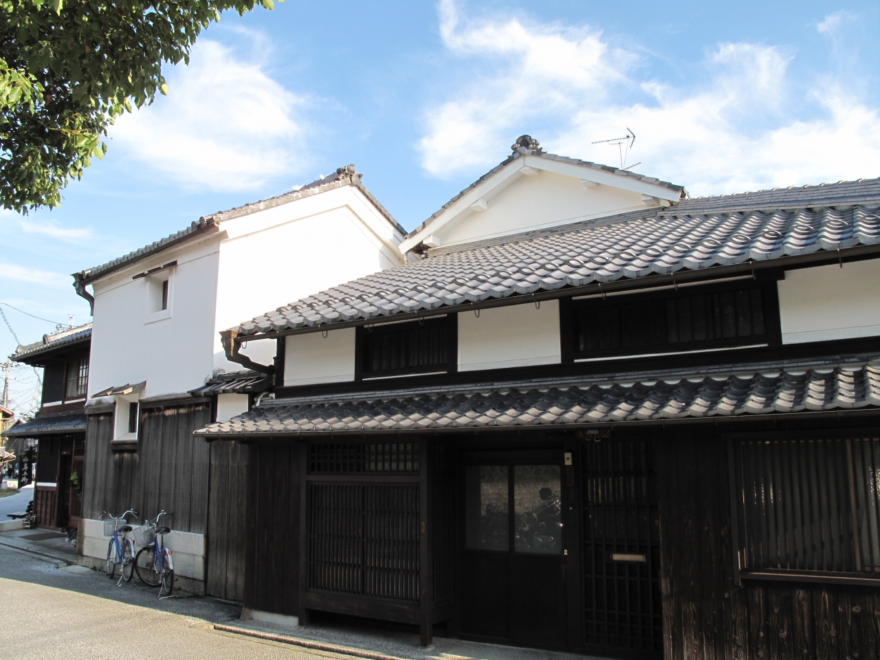 切妻造桟瓦葺、中二階建の木造建築が近江八幡の特徴です。