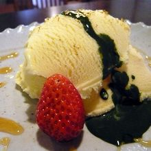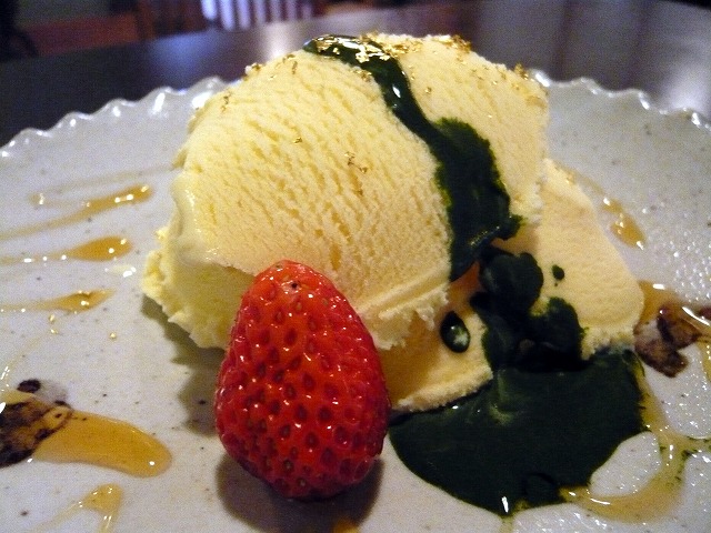 そして、アイスの周りに黒蜜がちりばめられていますよ。