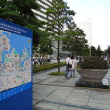 今月オープンして話題になったMARK IS みなとみらいと横浜美術館の間を通る約700mの公園です。公園両側には、リーフや横浜メディアタワーなどショップの多く入ったビルが並び、1階はオープンカフェのようになっていたりと、ゆっくりくつろげる場所です。