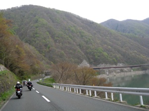 湖岸の道はダム湖畔にありがちなグネグネをこの道で望むことは出来ない。