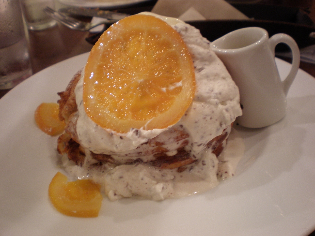 キッチンである。パンケーキといっても一人では食べきれないほどデコレーションされて