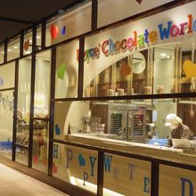 ガラス越しにオートメーション化されたチョコレートの製造過程を見学できます。