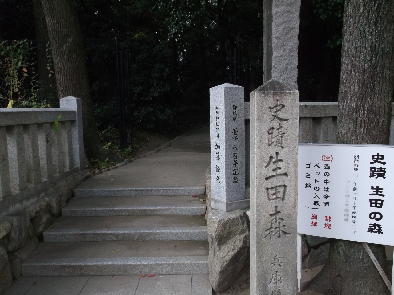 生田神社の境内にあり、本殿の裏にうっそうと繁っていますが、