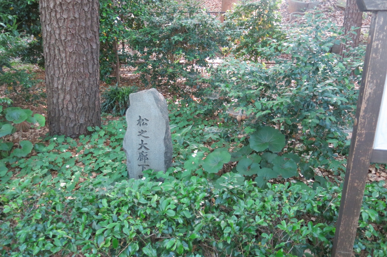 忠臣蔵で有名な松の廊下は江戸城の本丸にあります。ただし当時の建築物は何も残っておらず、石碑がひっそり残ってるのみです。