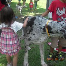 テレビで有名なパンくんと宮沢さんのステージを見にいきました。ステージはおもしろかたのですが、それ以外にもアルパカへのエサやりや、ドッグランならぬピッグ(豚)ランでの競争や、犬の放し飼いコーナーで子犬を抱いたりとか、子供が喜ぶアトラクションが多数ありました。夏に行ったので暑かったですね。