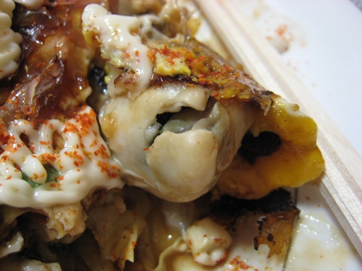 カキオコは牡蠣はたんまり入っていました。大阪のお好み焼きと比べて水分が多くて少しベチャっとした感じ。