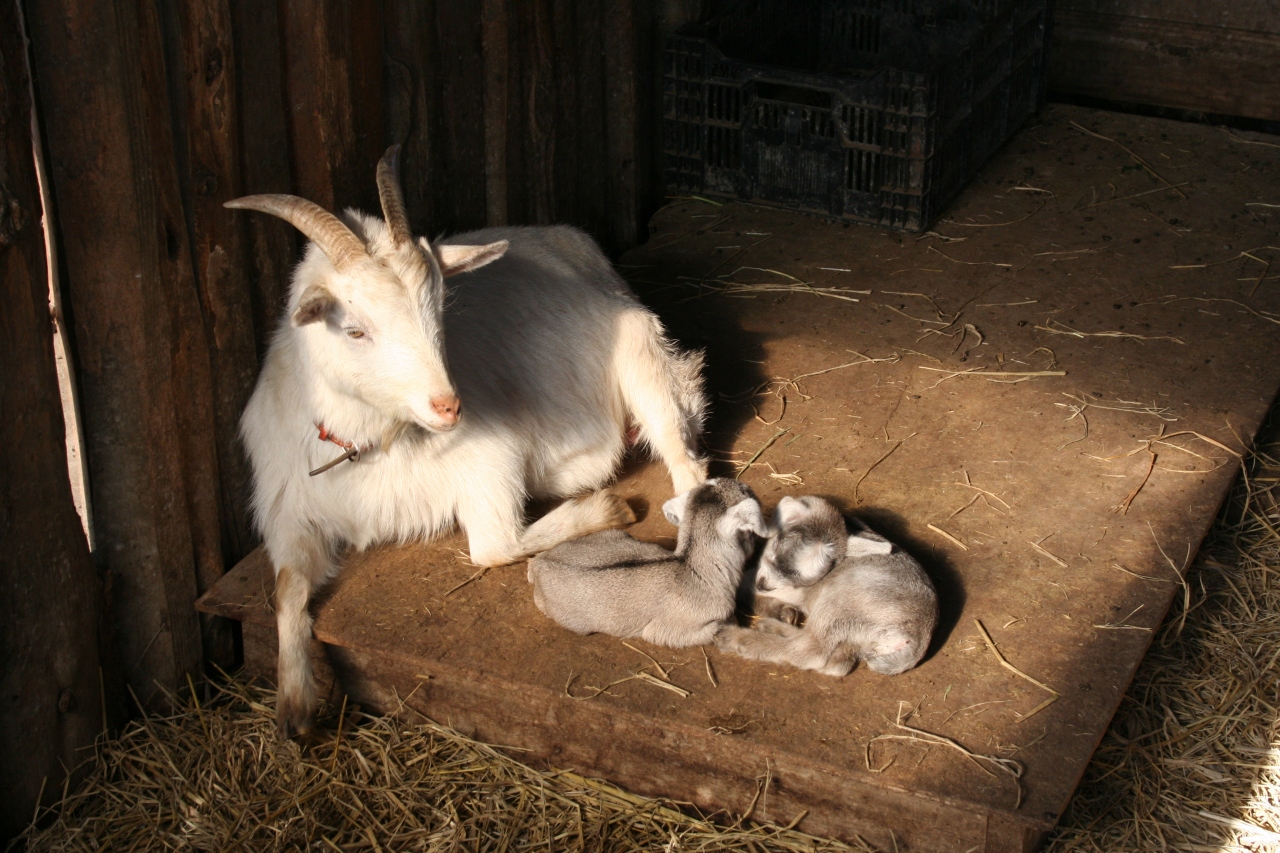 ヤギやウサギなどの小動物がたくさんいます。ちょうど子ヤギが生まれたばかりの時で、これが猫くらいの大きさしかない。お母さんヤギのすぐ近くでほよほよしている2匹の子ヤギに、うちの双子も興味津々でした。