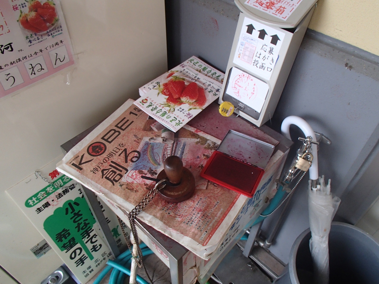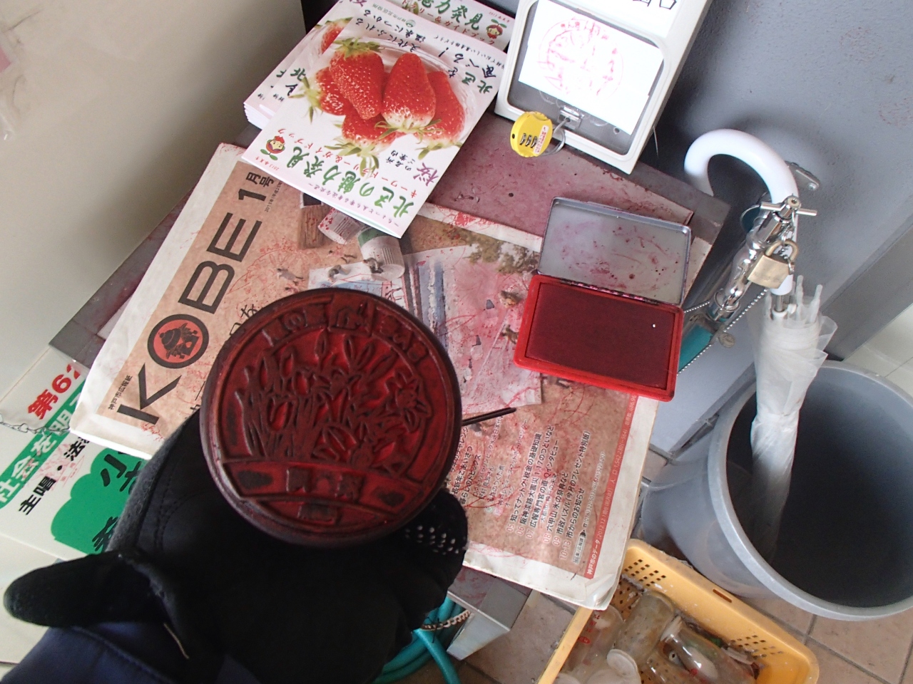 道の駅 淡河 (みちのえき おうご) のスタンプです。ここのスタンプは、スタンプラリーの一つとして置いてあって、何度も押された感じのスタンプで、デザイン的には、草木が生い茂っている様にも見え、なんとも、ぜひ、