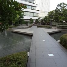 屋外スペースで目の前に、大観覧車やコスモワールドが見えます。開放感があり、水場や緑も多く気持ちの良いスペースです。イベントのない日でも、天気の良い日は、屋内のショッピングモールから出て、ゆっくりしたい場所です。