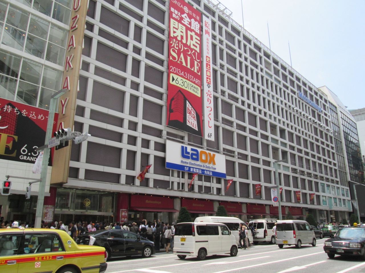 2013年6月30日、また一つ銀座の灯りが消えました。1924年から営業を続けてきた銀座最古の百貨店、松坂屋銀座店閉店の日です。若者の百貨店離れが進んだ結果の閉店です。2年後には複合商業施設として生まれ変わるということですが、その館内に百貨店としての松坂屋が入居するかは未定とのこと。多くの熟年ファンが別れを惜しむようにカメラのシャッターを切っていました。