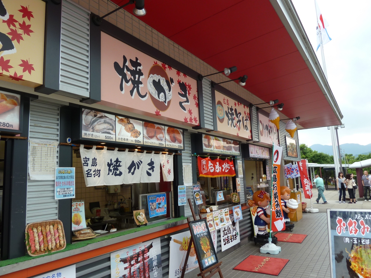 宮島に程近いためか、シーズンオフなのに焼き牡蠣も売っています。