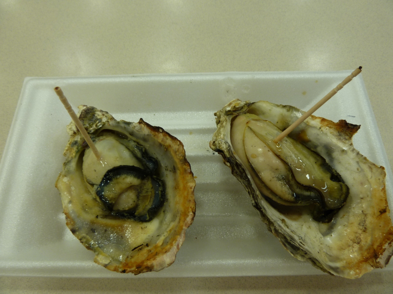 (焼き牡蠣コーナーのおじさんが明るくて面白かった)