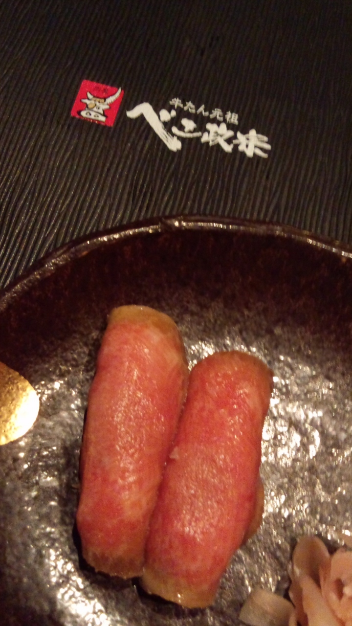 お通しはとろ牛たんのお寿司が2カン。