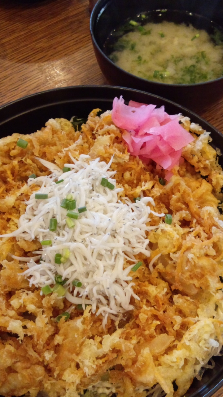 天候などにより生しらすの水揚げが無いことも多いですが、こちらのお店のしらすのかき揚げ丼はかなりのボリュームでお腹いっぱいになりますよ。