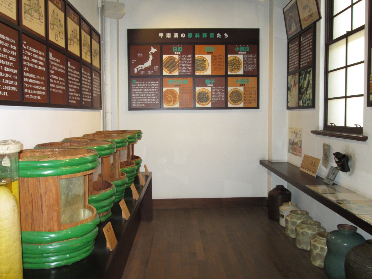 奈良漬の歴史や、奈良漬の主原料である酒粕の主な産地、灘五郷との関わりを説明する資料が展示されている無料の資料館