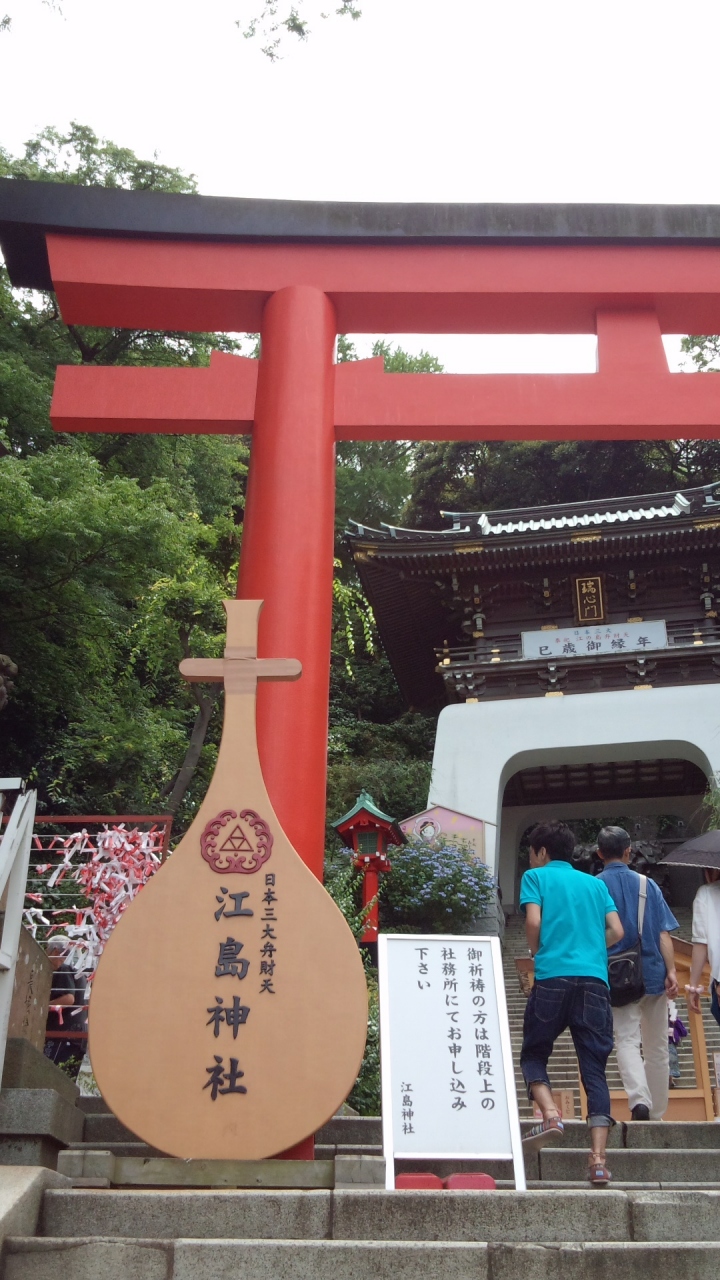 江ノ島大橋から瑞心門まではゆるやかな坂になっていて、お土産物屋さんなどが並んでいます。