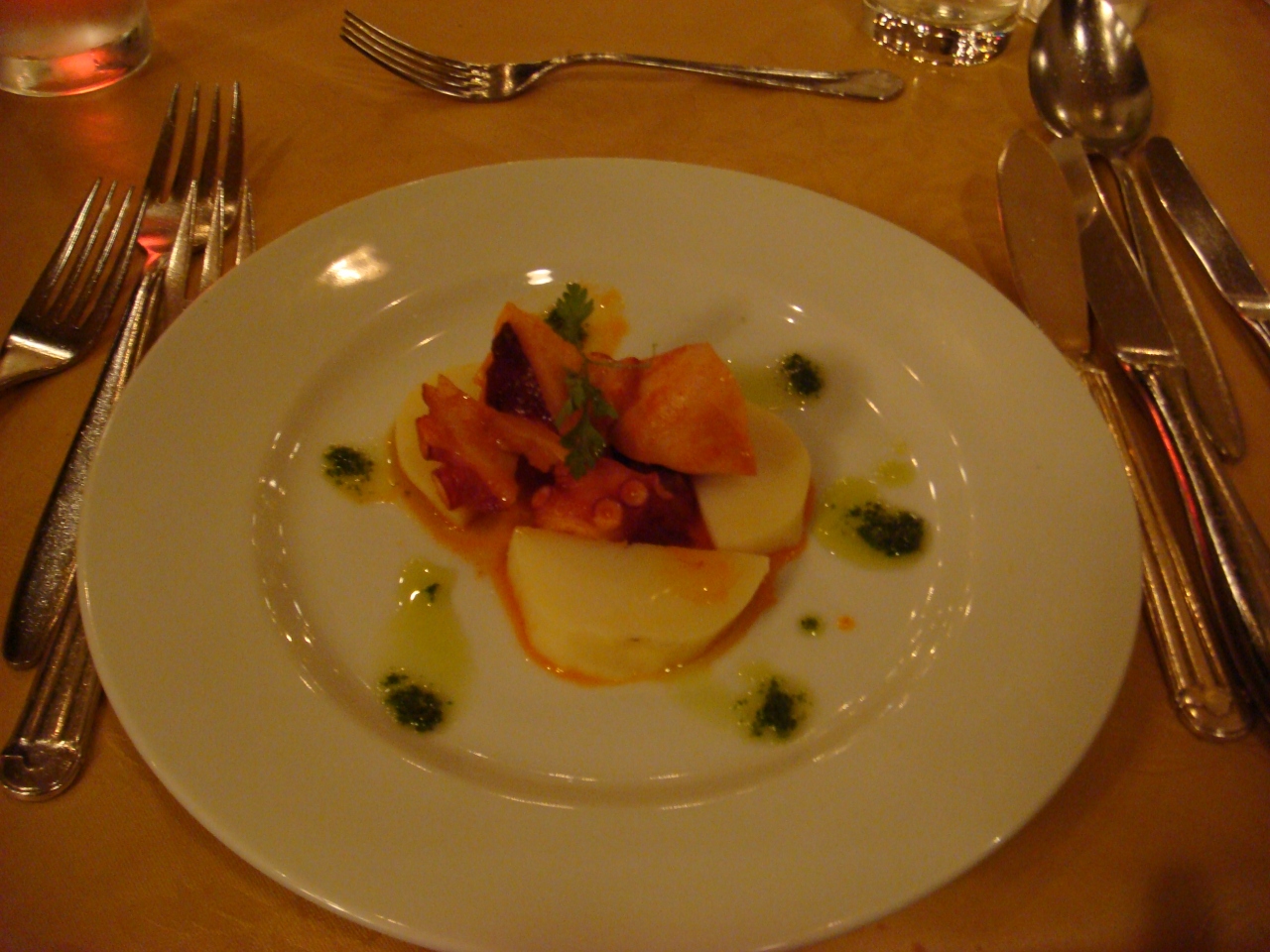 コルドバコースを注文。写真のほかに、海の幸のパエジャ、デザート(ピスタチオのケーキ)、スペインティー。ショーが始まってしまったので、写真は取れませんでした・・・