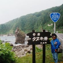 「タヌキ岩」は、国道229号線(追分ソーランライン)沿い、道の駅てっくいランド大成から車で約15分の、せたな町大成区の海岸にあります。お腹を突き出した狸の様に見える奇岩ですが、国道沿いにある説明用の看板が無いと見落としそうなちよっと地味なものでした。この近くには、“親子熊岩”や巨大なマンモスの様な“マンモス岩”、二つの岩が寄り添う“夫婦岩”などの奇岩があるので合わせて見られたら良いと思います。