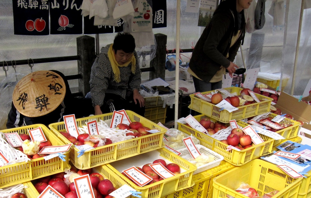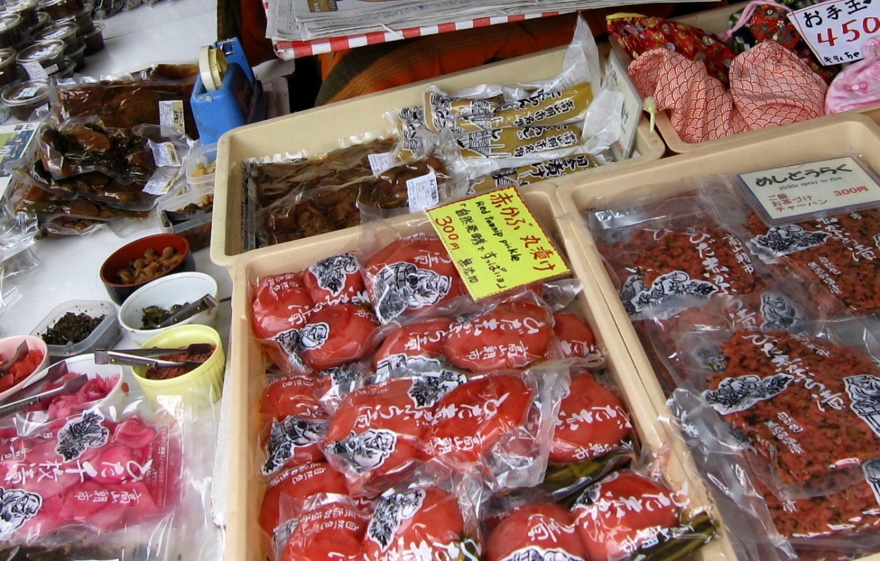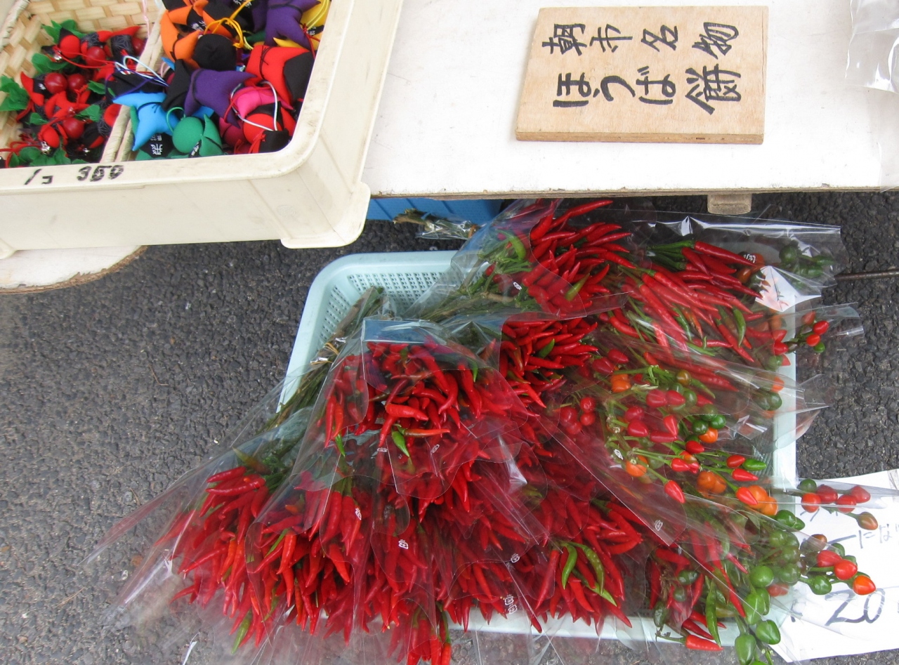古い町並みを見てから徒歩1分の宮川の朝市に行きました。