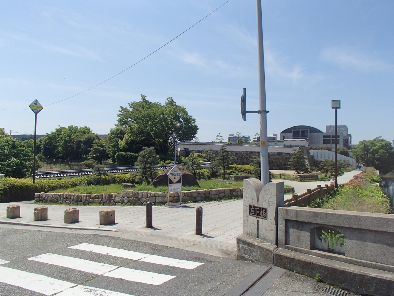尼崎城址公園 (アマガサキジョウシコウエン)は、かつての城跡を生かした公園で、尼崎市立中央図書館の北側にある公園です。以前、尼崎城があった場所に、石垣の城壁や日本庭園風の植栽、石畳の遊歩道が整備されています。