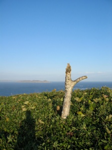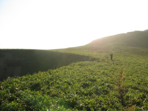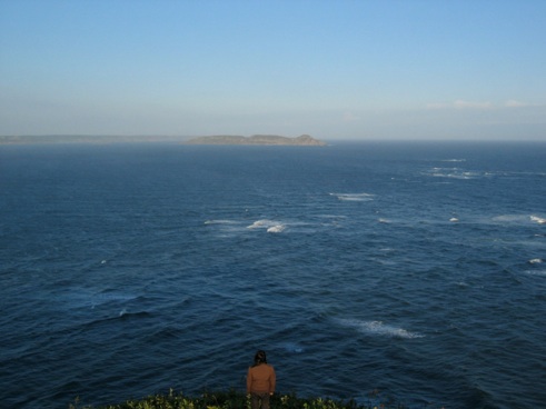 駐車場から遊歩道を進みます。周囲は強風が吹き付けて育たないのか、それとも別の理由があるのか?樹木の無い草原を太平洋を眼下にのぞみながら岬を目指します。