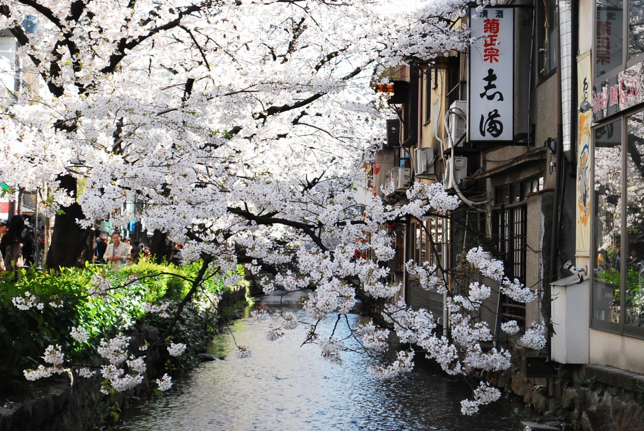 桜の季節は三条から四条の木屋町界隈は桜の名所として有名です