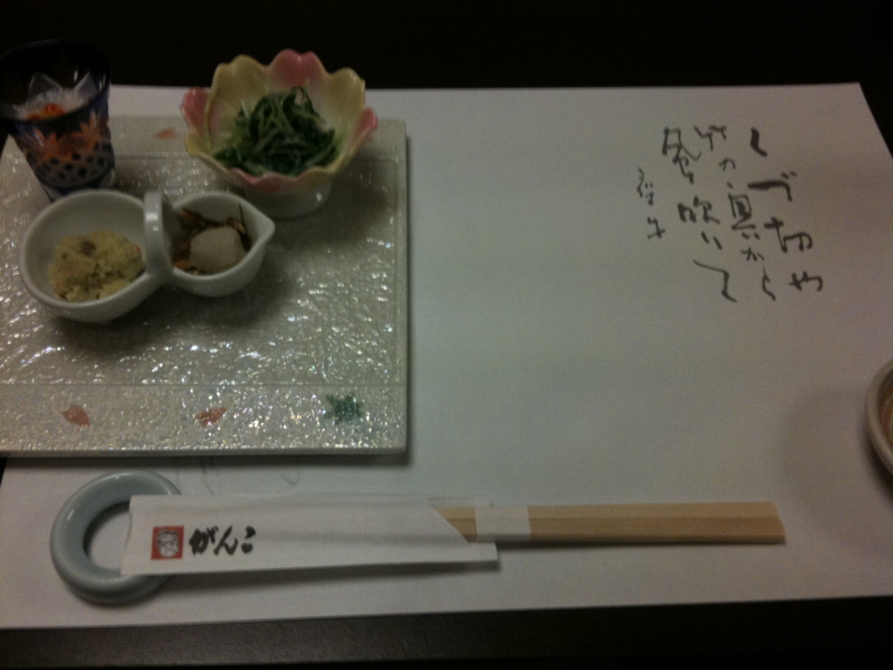 がんこでは、個室も充実しているので、また、椅子の部屋も有りますので、会食で使う事もできるそんなお店ですので、おすすめします。独りずつたべる事ができて、コース料理も充実しています。ぜひ、一度、行ってみてください。