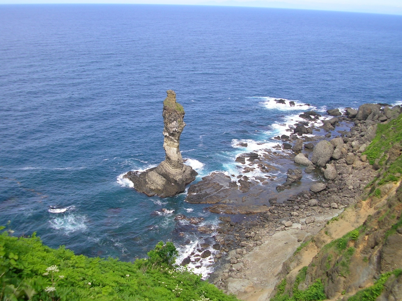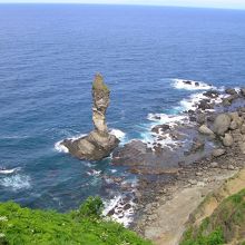積丹岬の駐車場から“シララの小道”と呼ばれるアップダウンの多い遊歩道を歩くこと約30分、海岸沿いに展望台があり、その真下に女郎子岩がありました。断崖絶壁と積丹ブルーの海、その中に立つ女郎子岩は絵になる姿でした。少し歩く必要がありますが、海岸沿いの眺望のよい整備された道なので、天気がよければ散策することをオススメします。