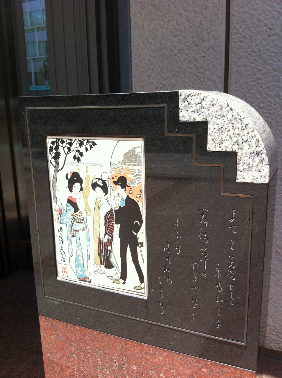 碑がある場所は、港屋があった場所とは少し離れた場所のようですが、