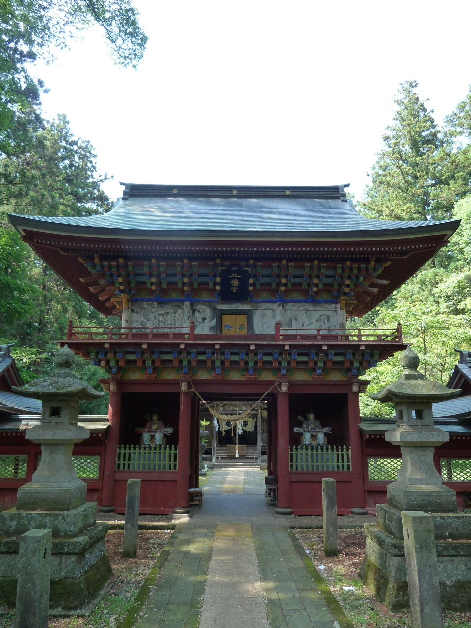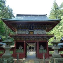 写真の朱色の楼門は、日光東照宮を想わせる鮮やかさです。
