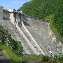 「定山渓ダム下流園地」は、札幌市内から国道230号線を車で走って約1時間のところにあります。定山渓ダムのまさに真下にある公園です。駐車場もあり、入園は無料で、園地から見上げる定山渓ダム定山渓ダムは、なかなか迫力があります。ダムや周囲の自然を眺めながらの散策が楽しめます。園内には“定山渓ダム資料館”もあり、こちらも入場は無料です。観光客も少なく、静かに自然が楽しめる穴場です。