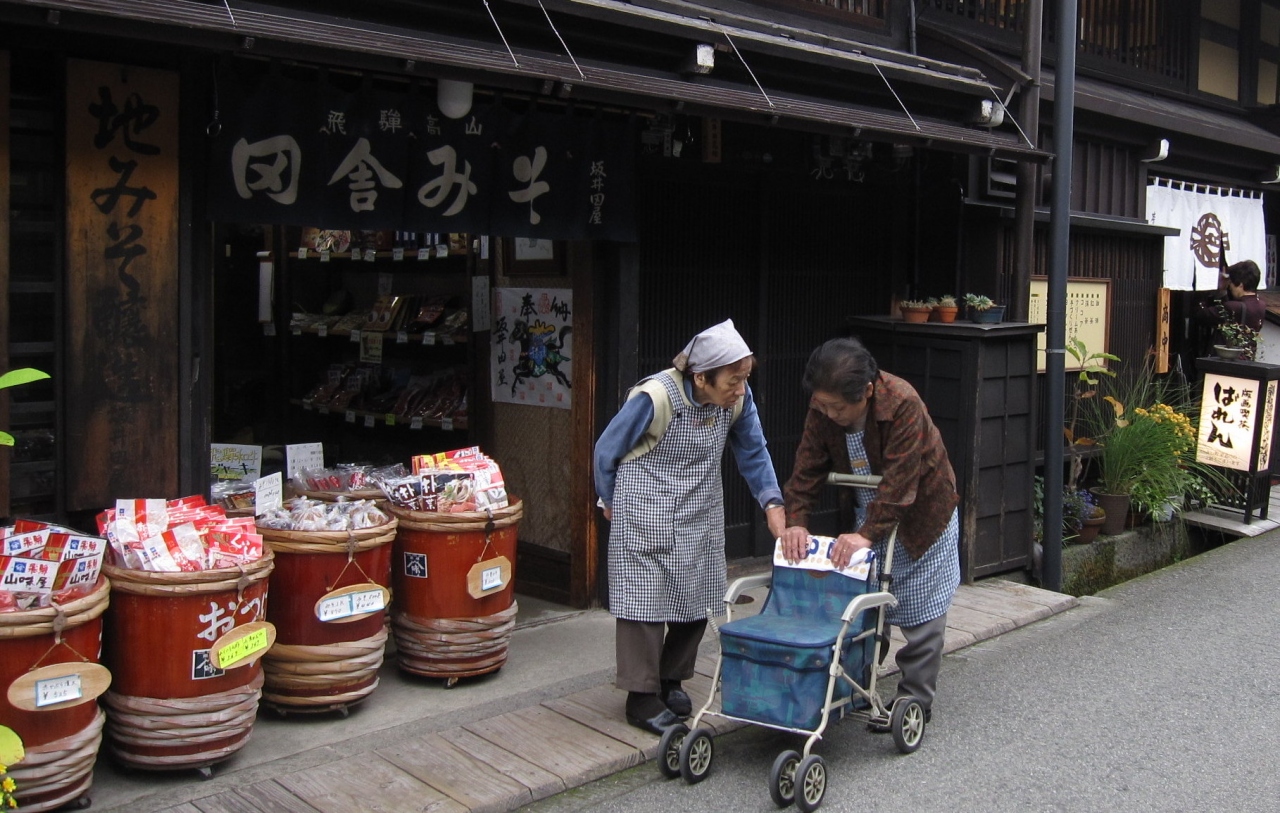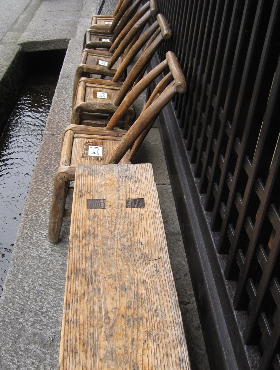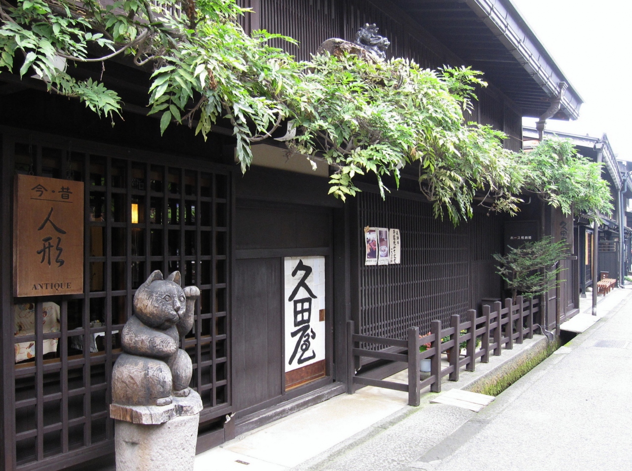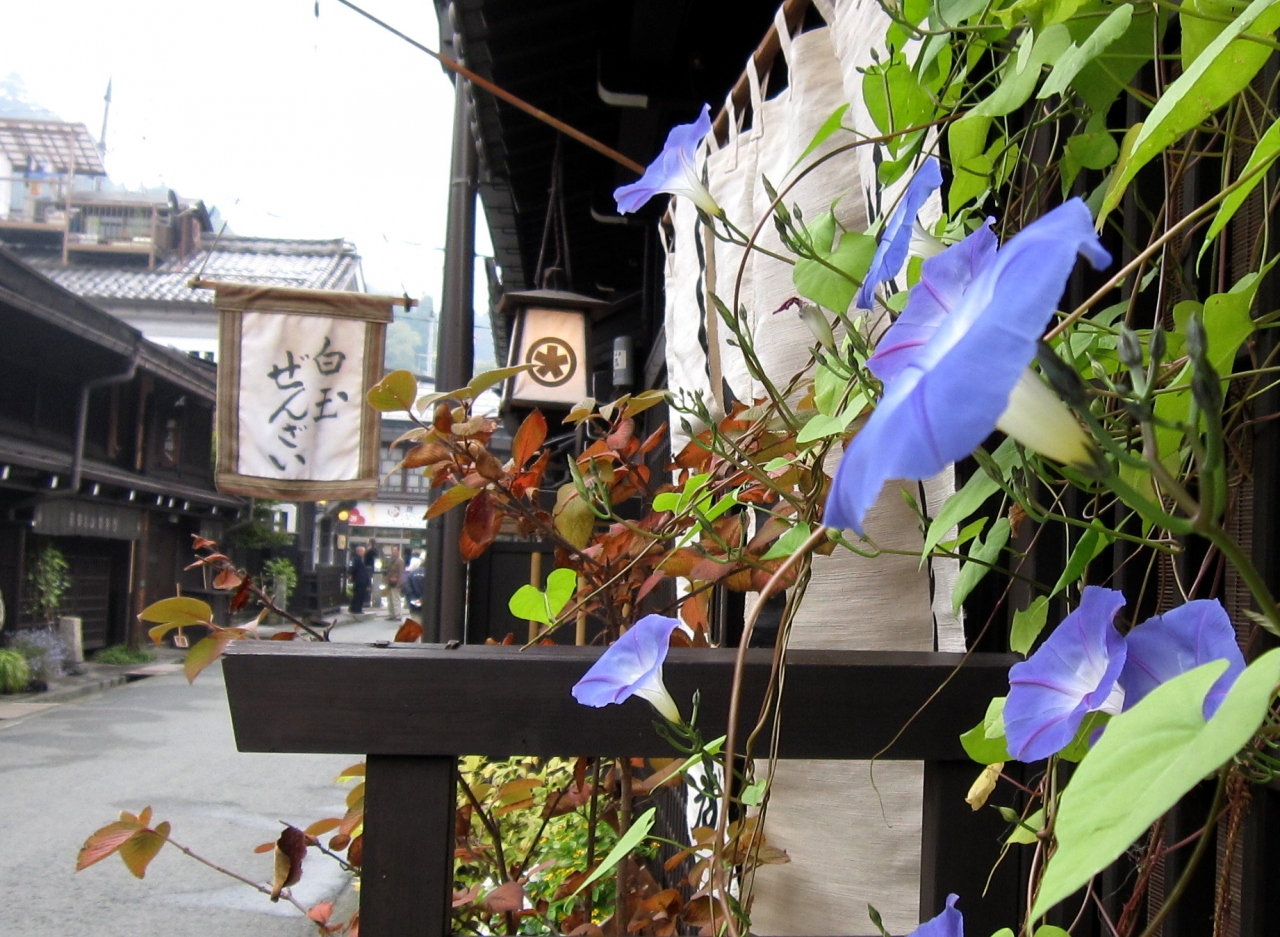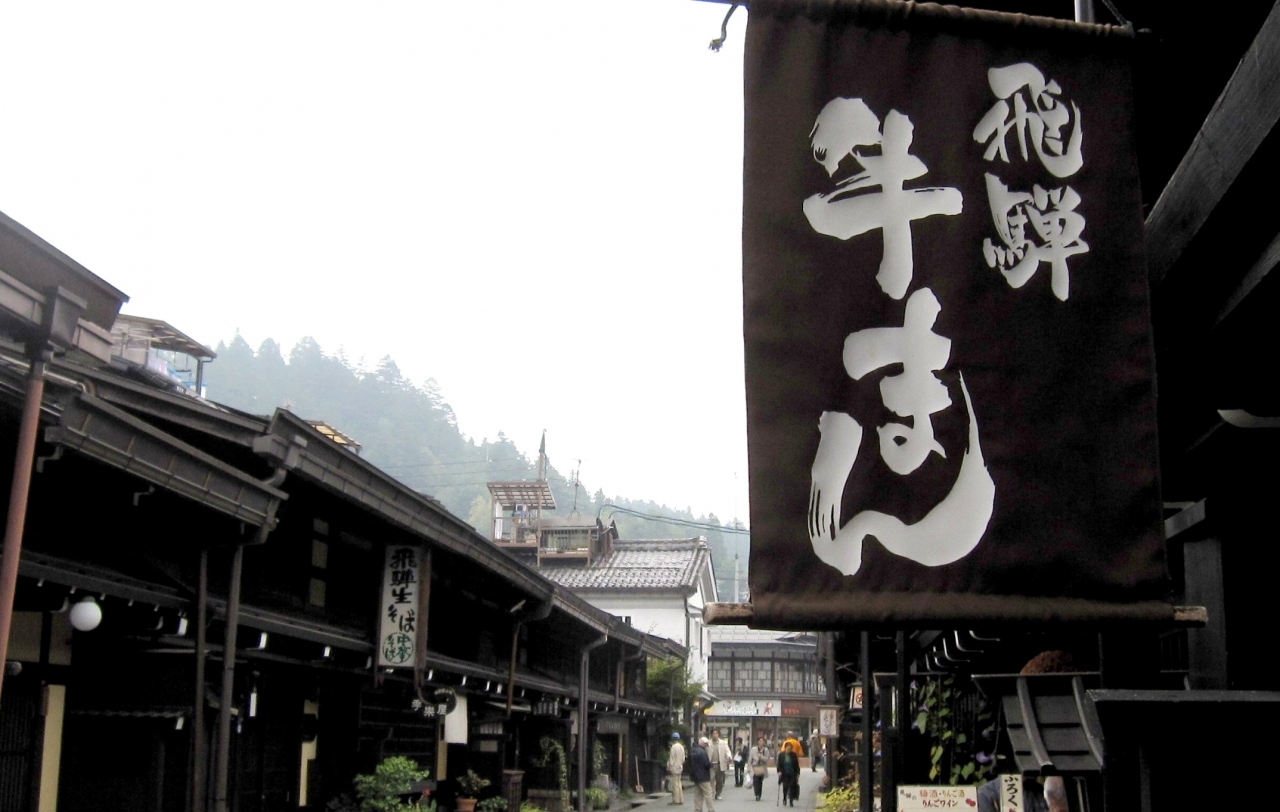 「古い町並み」は出格子の軒下に用水路が流れ、造り酒屋、味噌や、飛騨牛店等の