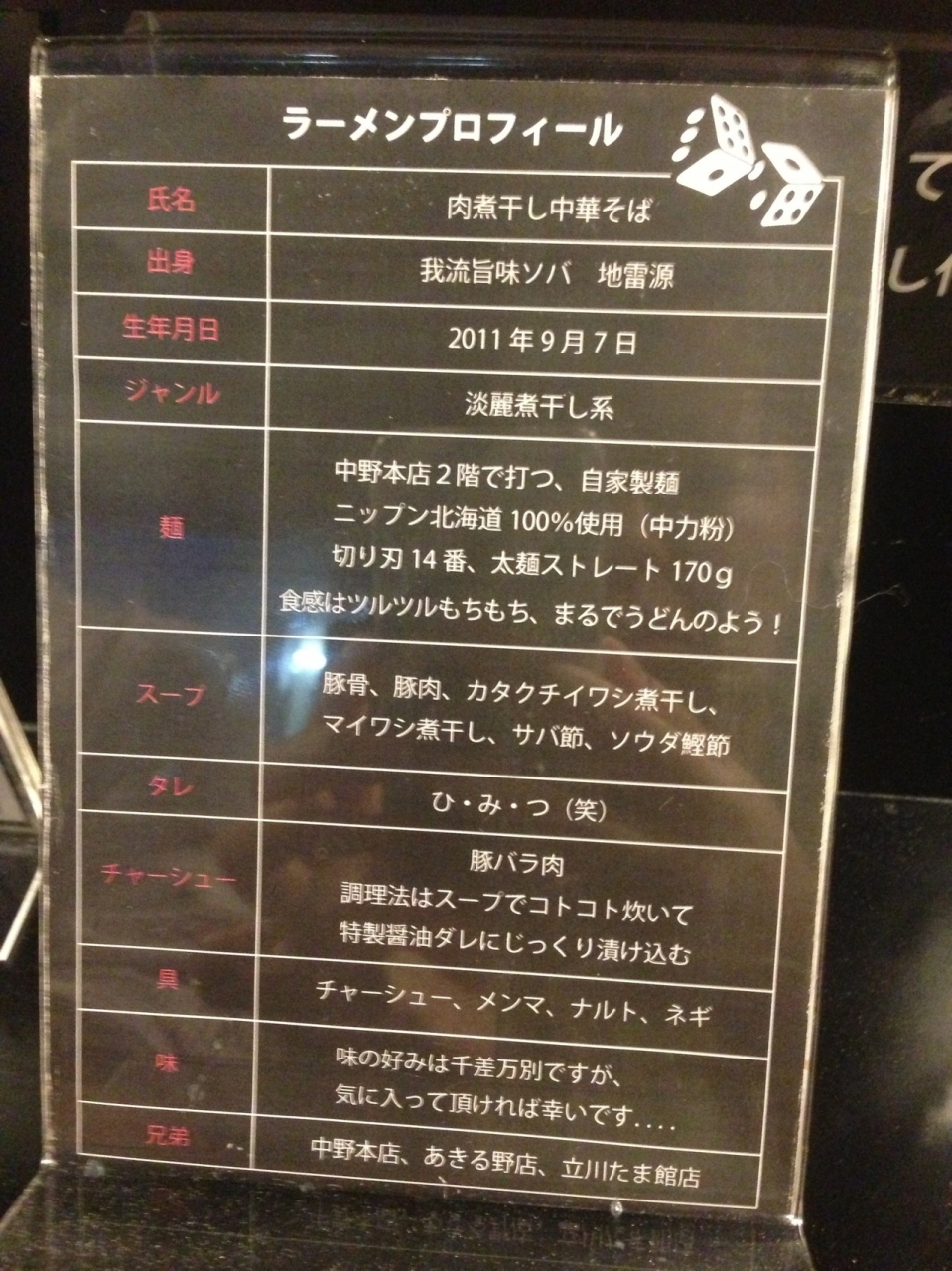 肉煮干中華そばはワンコインで食べられる日もあるようなので、要確認です。