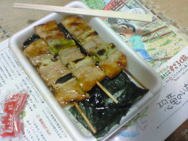 宿の方に聞いた「やきとり弁当」が函館名物らしく、海苔が乗ったご飯の上にタレがたっぷりのヤキトリが乗っているというシンプルながらも食欲をそそる弁当で、いい記念になりました。